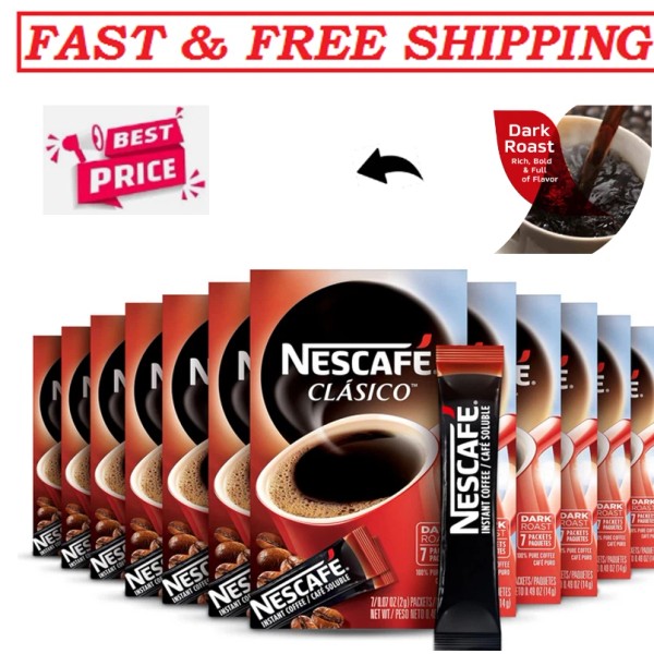 NESCAFÉ NESCAFE CLASICO, Dark Roast Instant Coffee, 12 boxes (84 packets) Great Price