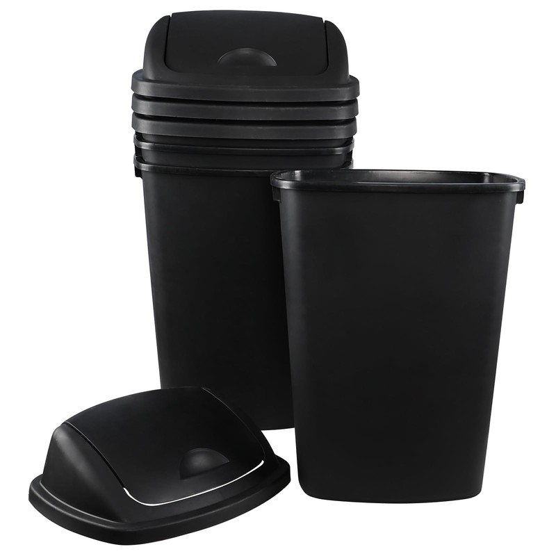Nesmilers 4-Pack 50 Liter Large Plastic Trash Can with Lid, Black Swing Top Garbage Can
