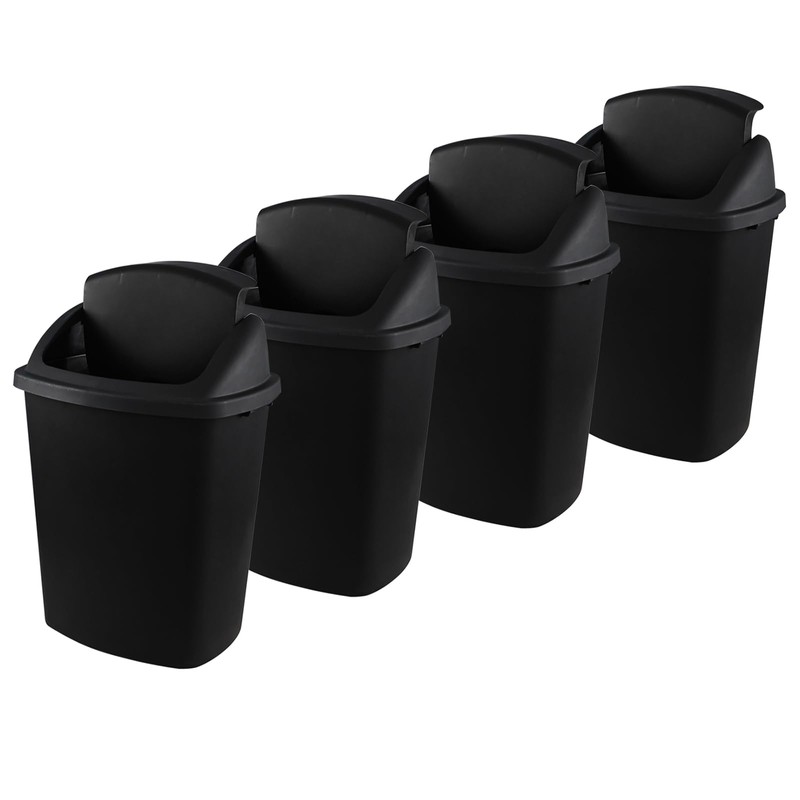 Nesmilers 4 Packs 70 L/18.5 Gallon Large Swing Top Trash Can, Outdoor Garbage Bin with Lid, Black