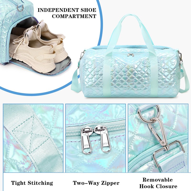 - Multi-Purpose Girls' Duffle Bag: This sports duffle bag for girls is perfect for various occasions, including gym workouts, overnight stays, and travel. It can be used as a gymnastics bag, school soccer bag, dance bag, cheer bag, weekend getaway bag, camping bag, swim bag, and more.