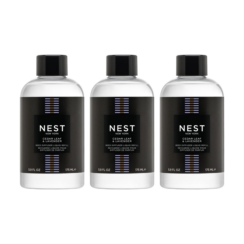 NEST New York Reed Diffuser Liquid Refill Bundle, Cedar Leaf & Lavender - Includes Three 5.9 fl oz Refill Bottles