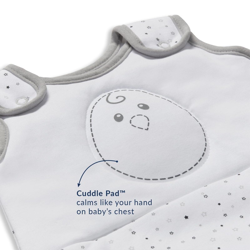 - The Cuddle Pad is designed to soothe like your reassuring palm on their chest and provide uninterrupted comfort. Adjustable snaps grow with your baby. 2-way zipper makes diaper changes a breeze. Quality tested for high usage. OEKO-TEX-tested.