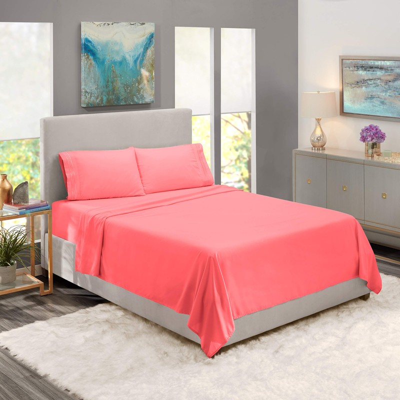 Nestl Bedding 5 Piece Sheet Set - 1800 Deep Pocket Bed Sheet Set - Hotel Luxury Double Brushed Microfiber Sheets - Deep Pocket Fitted Sheet, Flat Sheet, Pillow Cases, Split Cal King - Coral Pink