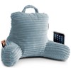 Nestl Cut Plush Striped Reading Pillow for Kids & Teens, Small Back Pillow, Back Support Pillow, Shredded Memory Foam Bed Rest Pillow with Arms, Stone Blue
