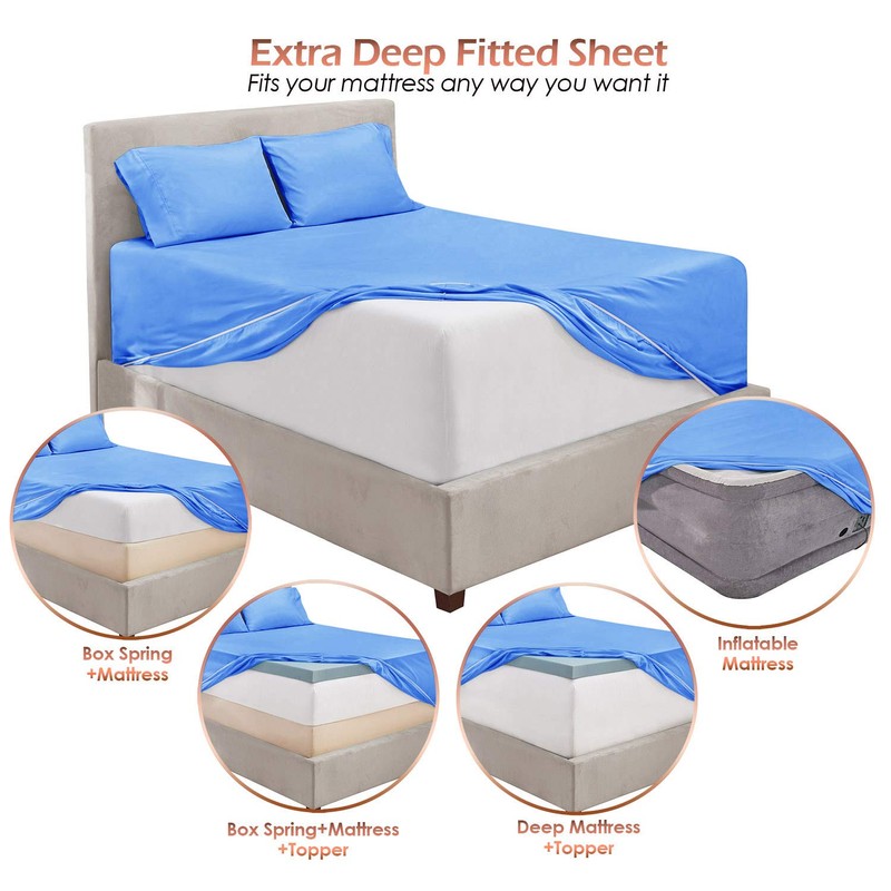 - EXTRA DEEP POCKET SHEETS: Deep pocket sheets fit deep pocket 18, 20, 21, 22, and 24-inch mattresses. These are great for extra deep matresses/large matresses/very tall matresses and fits well matresses with 3 inch or 4 inch memory foam mattress toppers, double pillow top, memory foam toppers, or big mattress pads!