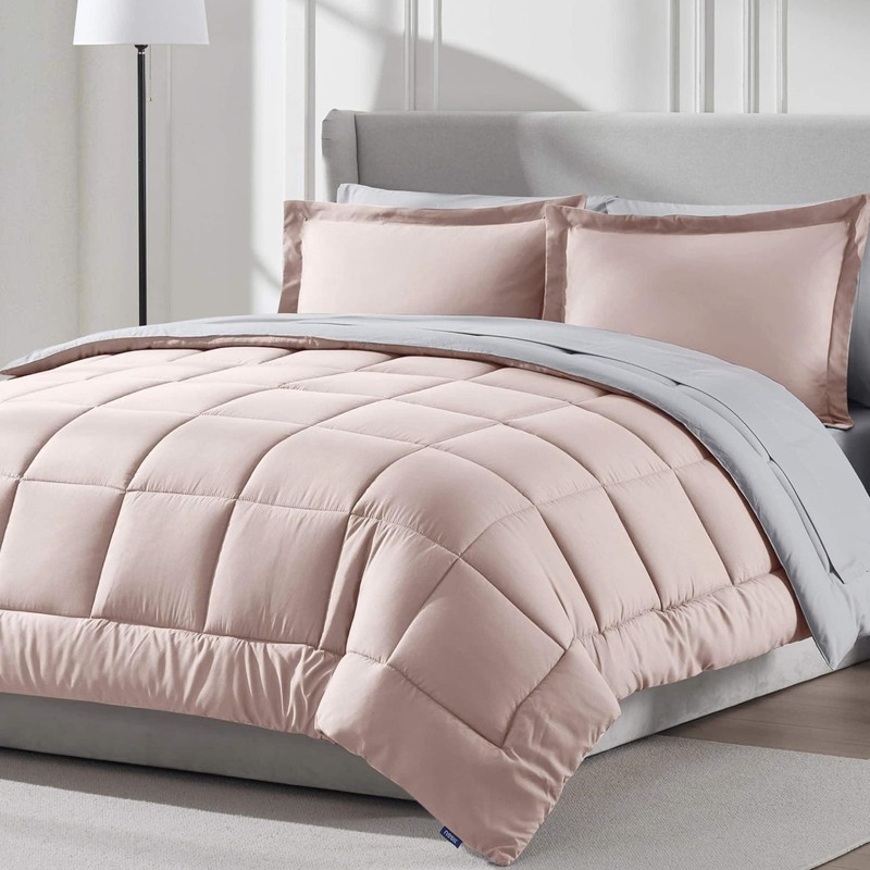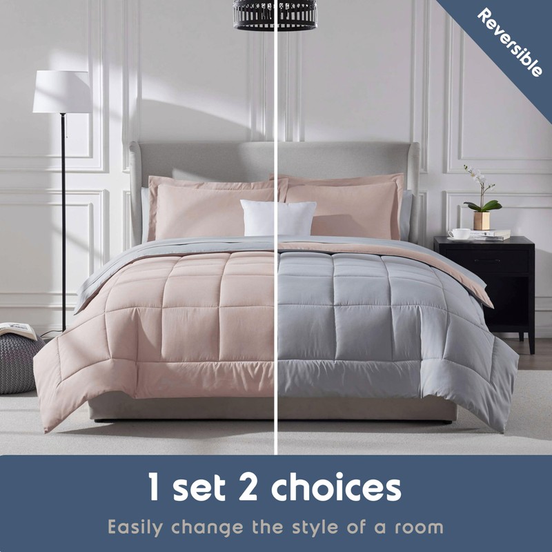 - Reversible Comforter Full Size Set: Dual colors on the all-season fluffy comforter keep your bedroom style fresh, and the elegant, diamond-pattern stitching keeps the filling from shifting. The fitted sheet includes elastic all the way around, so it stays in place all night long.