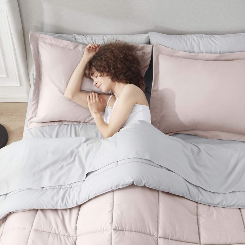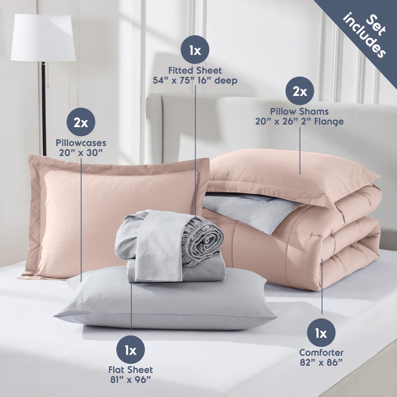 Nestl Full Size Comforter Set 7 Piece - Reversible Bedding Sets Full Blush Pink, All Season Bed in a Bag Full Size Bed Set, Full Size Bed Sheets and Comforter Set with Pillowcases and Shams