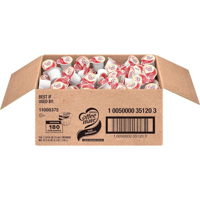 Nestle Coffee-mate Liquid Creamer Singles, Original 180 ct. Condition is "New".