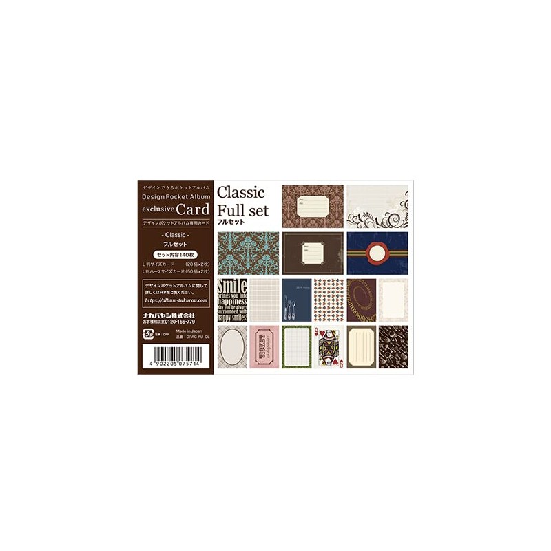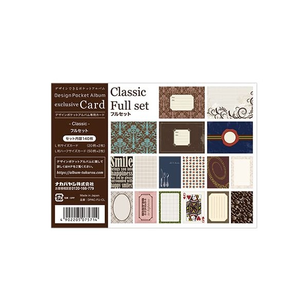 - Designed card for the design pocket album Full set of large and large half sized cards. The "Classic" has a classic design to create a chic album. Product Dimensions: L size (Height x Width x Depth): 5.0 x 3.5 inches (128 x 89 mm), L size (Height x Width x Width): 3.5 x 2.4 inches (89 x 61 mm); Product weight: 8.1 oz (230 g); Large size: 20 types x 2 each; Printed on both sides (separate designs are printed on the front and back. The design is a mix of vertical and horizontal designs
