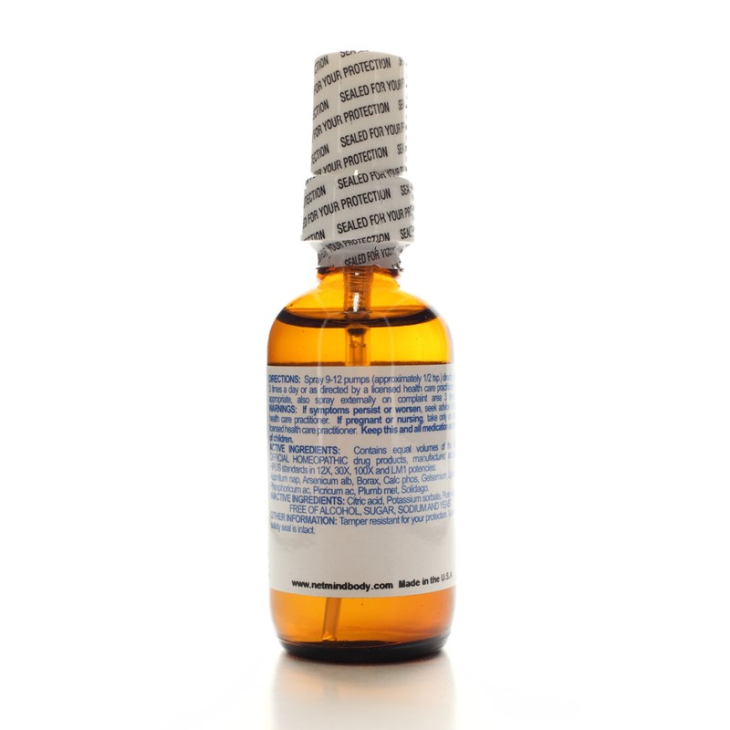 Active Ingredients: Contains equal volumes of the following official homeopathic drug products, manufactured according to HPUS standards in 12X, 30X, 100X, and LM1 potencies: Aconitum nap, Arsenicum alb, Borax, Calc phos, Gelsemium, Lycopodium Phosphoricum ac, Piricum ac, Plumb met, Solidago. Inactive ingredients: Citric acid, Potassium sorbate, Pure water. 59ml