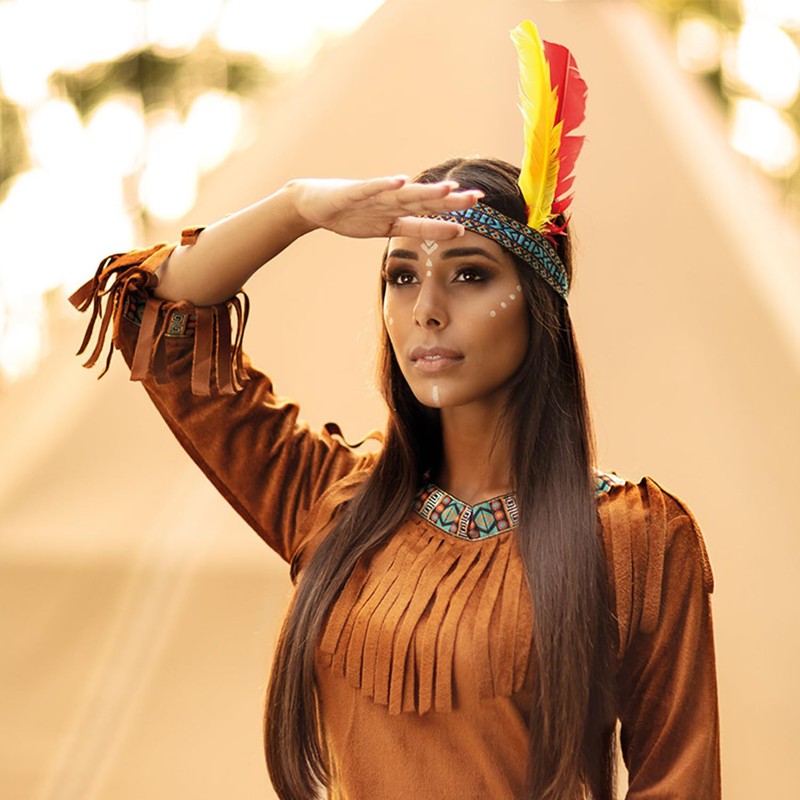 - Plunge into the adventure of the Wild West with our trendy Indian headband with feathers. This colourful unisex costume accessory is more than just a headband - it is a statement that completes your look for carnival, theme parties and other festive occasions. Wear this beautiful feather headpiece and become an eye-catcher in the style of Pocahontas