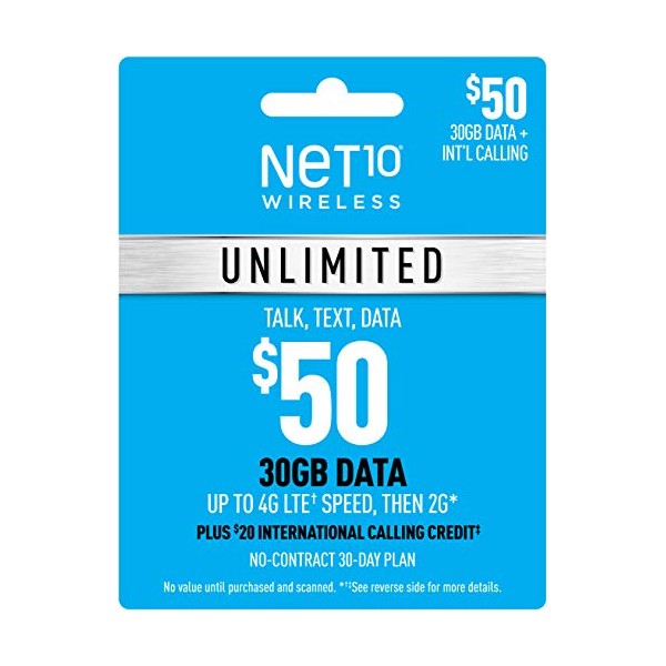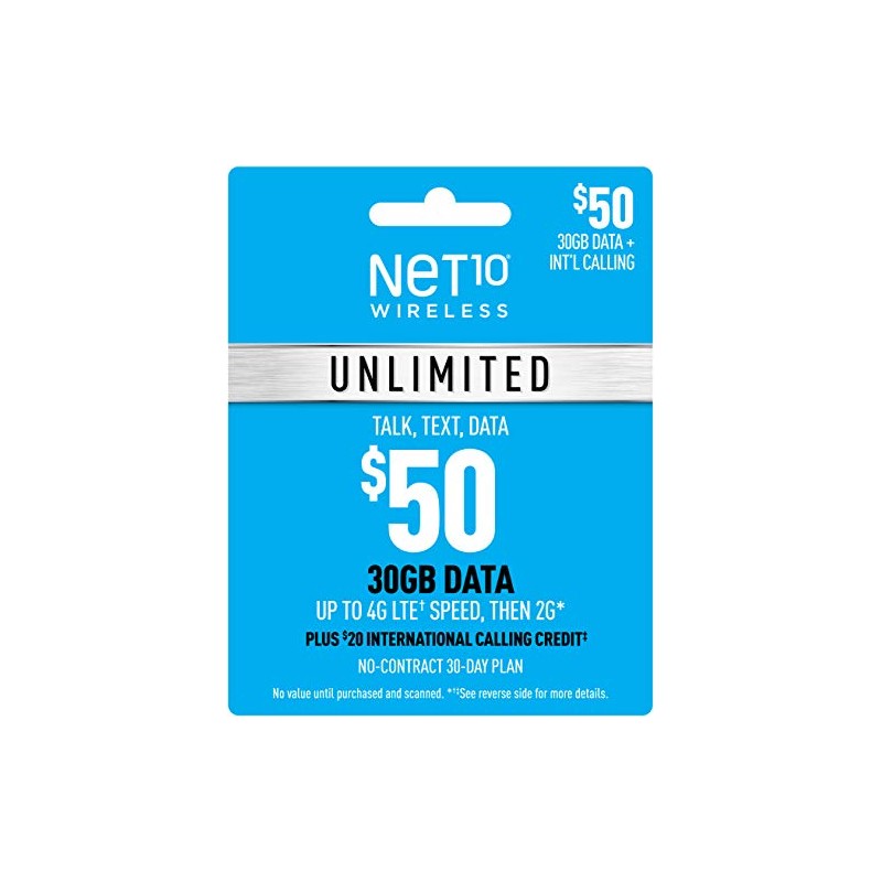 Net10 Wirelss $50 Unlimited 10GB Plan Refill Card (Mail Delivery)