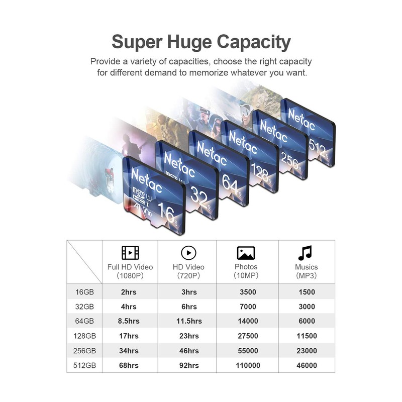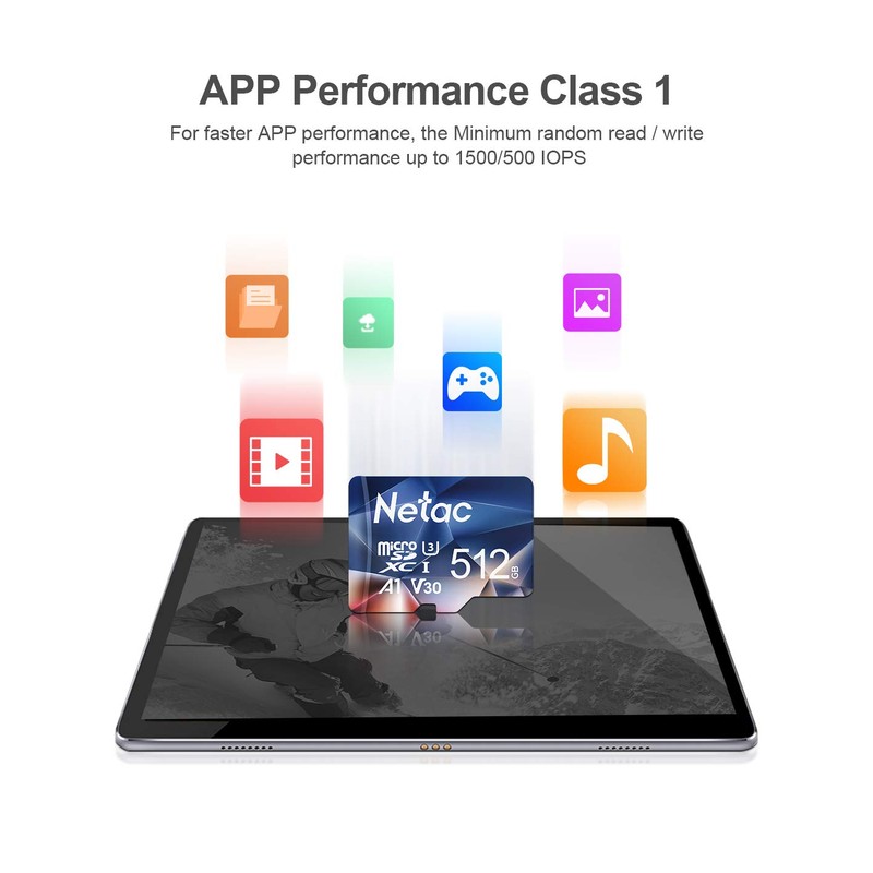 Netac MicroSDHC Memory Card 512GB, Micro SD Card, 4K Full HD Video Recording, UHS-I, C10, U3, A1, V30, for Camera, Smartphone, Security System, Drone, Dash Cam, Gopro
