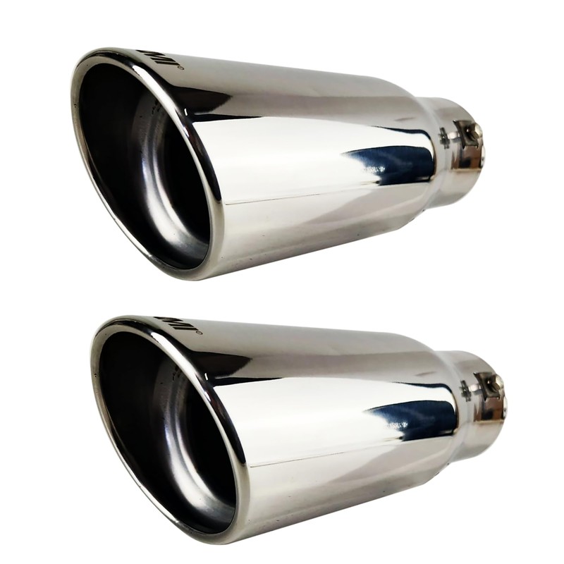 NETAMI Universal Exhaust Tip Stainless Steel Resonated Chrome Polish Bolt-on 2 Pack
