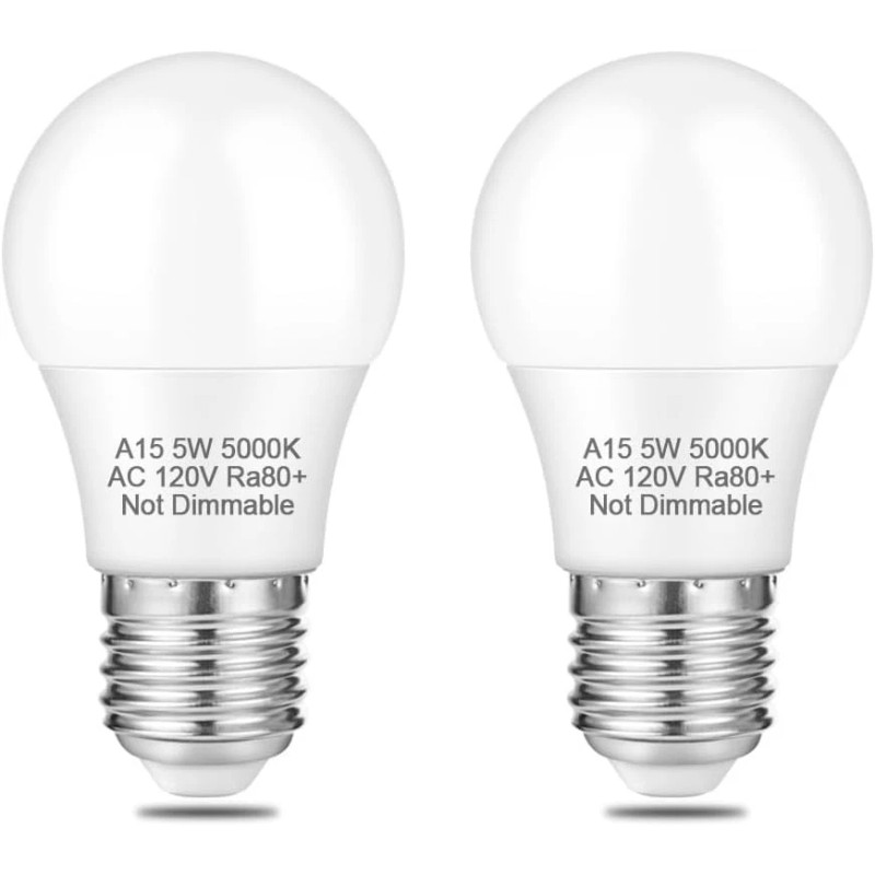 NETEHA 2 Pack A15 5W 120V E26 Base LED Refrigerator 2 Pack, 5000k Daylight
