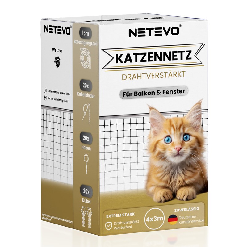 - NETEVO - According to § 19 UStG, no VAT is shown 🛡️ OPTIMAL PROTECTION: The wire-reinforced and bite-proof cat net ensures safe fun for your cat on the balcony, even in your absence. The cat protection net is perfect for balcony, terrace and window.