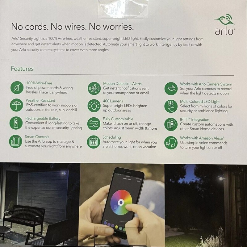 New Sealed Arlo Lights - Smart Home Security Light | Wireless, Weather Resistant, Motion Sensor, Indoor/Outdoor, Multi-colored LED| 1 Light Kit (ALS1101) camera not included