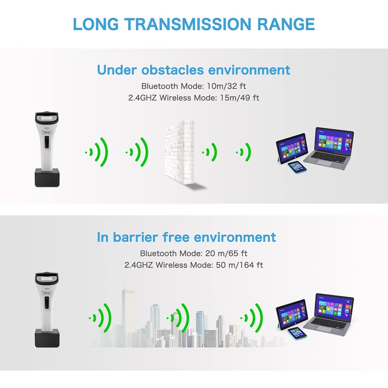 - It is compatible with the tecnología de modo dual Bluetooth: (Bluetooth LE V4.2 y Bluetooth 2.1 + EDR, Clase 1) para brindarle la libertad y brindar flexibilidad a su negocio. It is compatible with cualquier teléfono inteligente, tableta u ordenador: el DS8100 se empareja fácilmente con cualquier dispositivo móvil o PC. Además, permite a los usuarios transmitir datos al host desde una distancia de hasta 100 metros de la base.