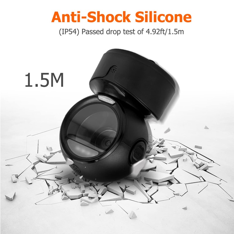 • ➽【Non-slip Base and Anti-shock Design】Our Handsfree Omnidirectional Barcode Scanner can be directly placed on the desk, the anti-slip base makes it more stable, Built-in anti-vibration system can avoid damage while falling from the height of 4.92 feet. IP54 technology protects the wireless barcode scanner from dust.