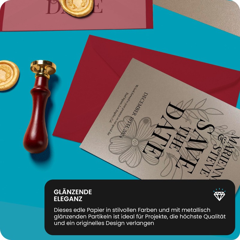 - Brilliant paper for brilliant ideas – brilliant, shimmering paper on both sides with metallic effect. Let yourself be inspired by the pearlescent shine of this paper. Impress your guests or customers with your brilliant ideas.