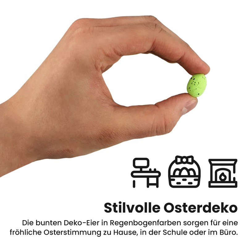 - ⦁ STYLISH EASTER DECORATIONS - The colourful decorative eggs in rainbow colours create a cheerful Easter atmosphere at home, school or office. Our spring-like and colourful Easter eggs are ideal for egg hunts or Easter party decorations.