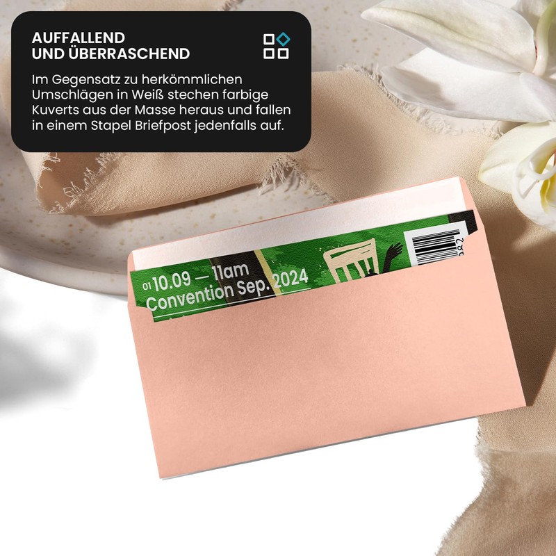 • Eye-catching and surprising: unlike conventional envelopes in white, coloured envelopes stand out from the crowd and stand out in a stack of letter post. Envelopes in eye-catching colours look unusual and arouse interest and curiosity about the contents. So you can surprise your customers or acquaintances.