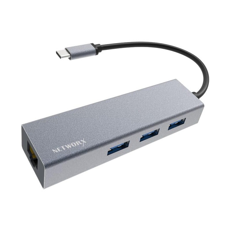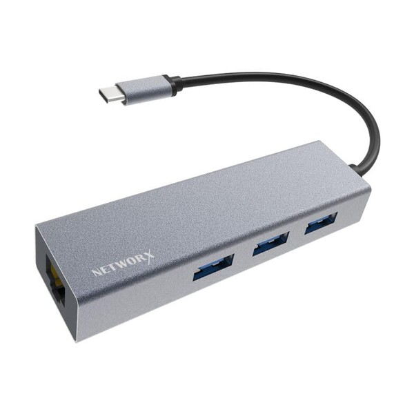 Networx USB-C Hub, USB-C to 3 x USB 3.0/Ethernet, Space Grey
