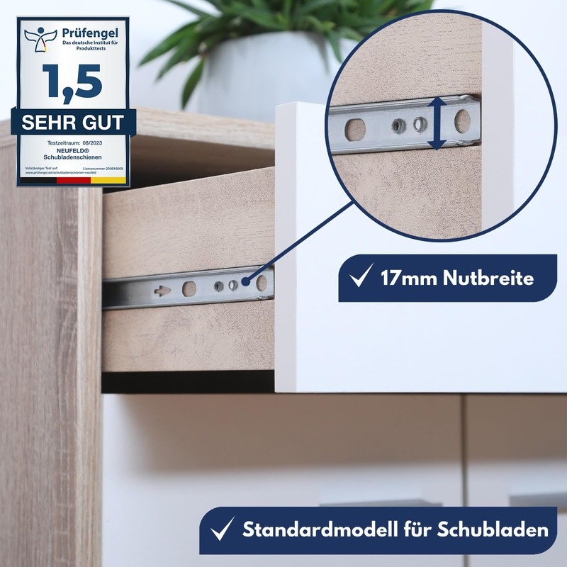 • ✔ Perfect fit standard model – the NEUFELD drawer runners fit almost any household drawer. The slide rail can withstand maximum loads without bending