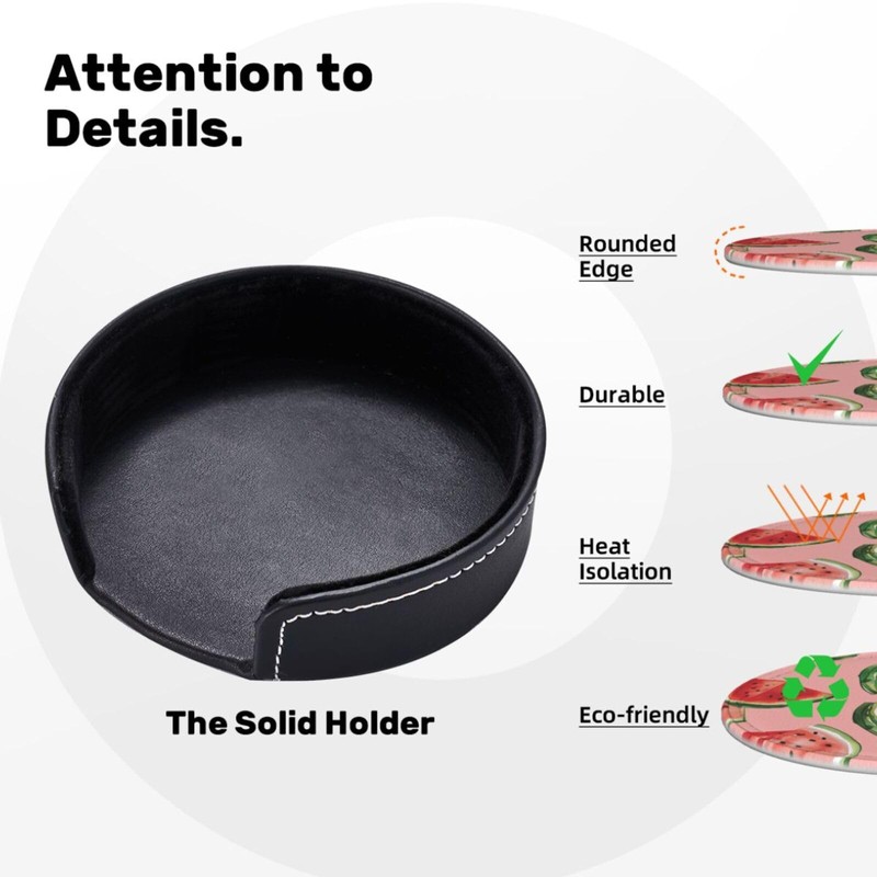 - High Quality Material: Round Shaped Pu Leather Coaster Set Is Made Of High Quality Pu Leather For Better Heat Insulation And More Sturdy. Lightweight, Durable, Non Slip, Water Resistant.