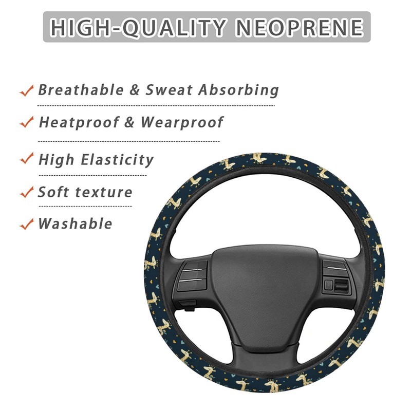Neukim Cartoon Giraffes Car Steering Wheel Cover Auto Steering Wheel Protector Anti-Slip Elasticity and Breathable Car Accessories Universal 15 Inch for Cars SUV Sedan Vans Trucks