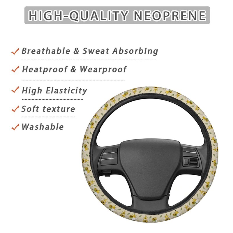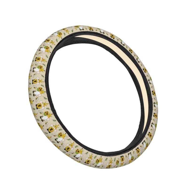 Neukim Gnome Bee Sunflower Steering Wheel Covers Anti-Slip Elasticity Car Accessories Steering Wheel Protector Universal 15 Inch for Cars SUV Vehicle Truck