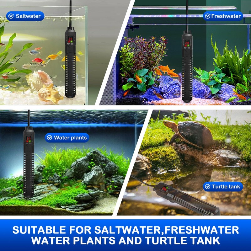 - 【Safety Protection】Safety remains a top priority with our fish tank heaters. Our turtle tank heater have 3 intelligent protector. ① Overheat protection, when the temperature is higher than 34℃, it will automatically stop heating. ② Off-Water auto-off protection, when the submersible aquarium heater is higher than the level of the fish tank water, it will automatically stop heating.