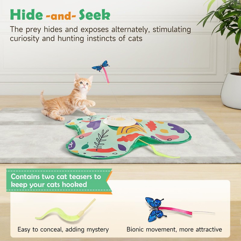 Neulriscn Interactive Cat Toys, Moving Concealed Feathers Toy for Kittens, Hide and Seek Wand Toy for Indoor Cats, Fluttering Butterfly, Motion Activated, Indoor Exercise for Bored Adult Cats (Green)