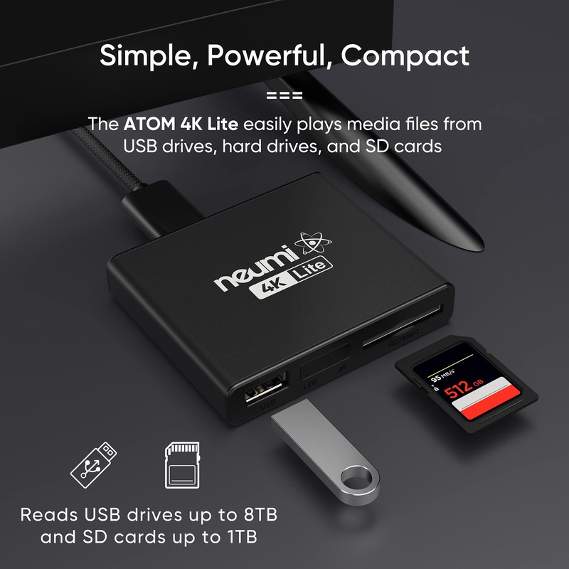 NEUMI Atom 4K Lite Ultra-HD Digital Media Player for USB Drives and SD Cards - Plays 4K/UHD Videos, HEVC/H.265, HDMI and Analog AV, Automatic Playback, Looping, Trigger Capability