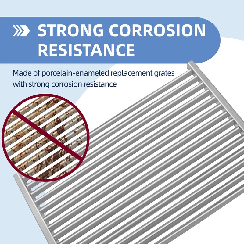 - 【Product Materials】-Our Grill grates made of heavy duty SUS 304 food-grade stainless steel to ensure long-lasting use. Do not fracture or rust out like the iron, more durable and leave beautiful grill marks on the food. non-stick oil and easy to clean for Smooth surface;distributes heat more long lasting evenly ,heat your food evenly to get delicious taste.