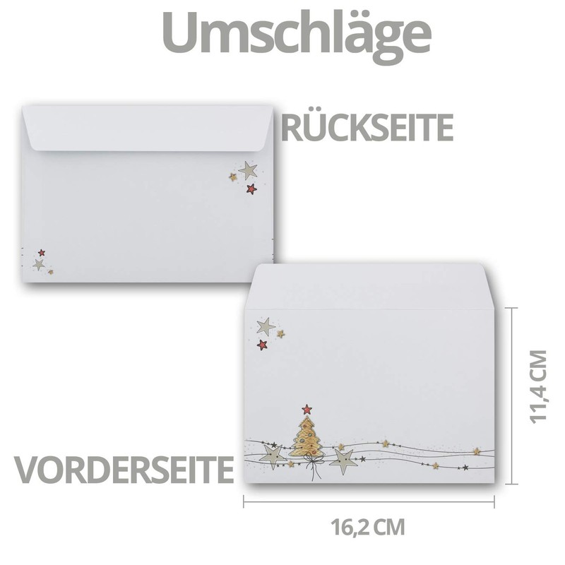 NEUSER PAPIER 15 x Christmas Card Set DIN A6 in White with Christmas Tree and Stars - Folding Cards with Matching Envelopes - Christmas Greetings for Companies and Private People