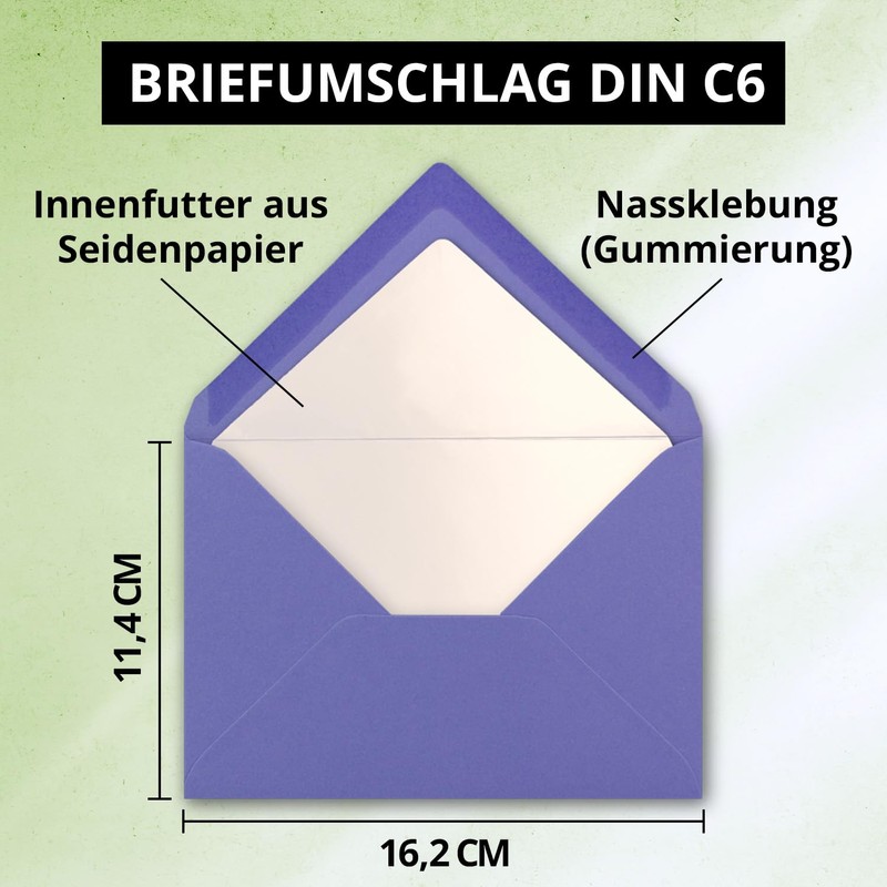 NEUSER PAPIER 25 envelopes violet - DIN C6 - lined with white tissue paper - 90 g/m² - 11.4 x 16.2 cm - wet glue -