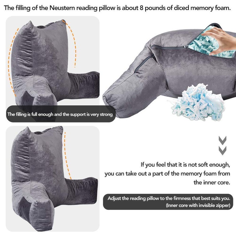 Neustern Reading Pillow for Sitting in Bed Adult, Back Pillow for Bed Shredded Memory Foam Chair Pillow with Arms and Pockets, Backrest and Support with Washable Cover for Watching TV/Gaming/Relaxing