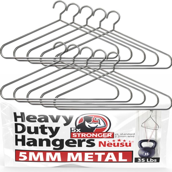 Neusu Heavy Duty Hangers - 5mm Solid Metal, Hold Over 35 Lbs, Extra Strong Coathangers for Heavy Clothes - Hotel Quality (10 Pack)