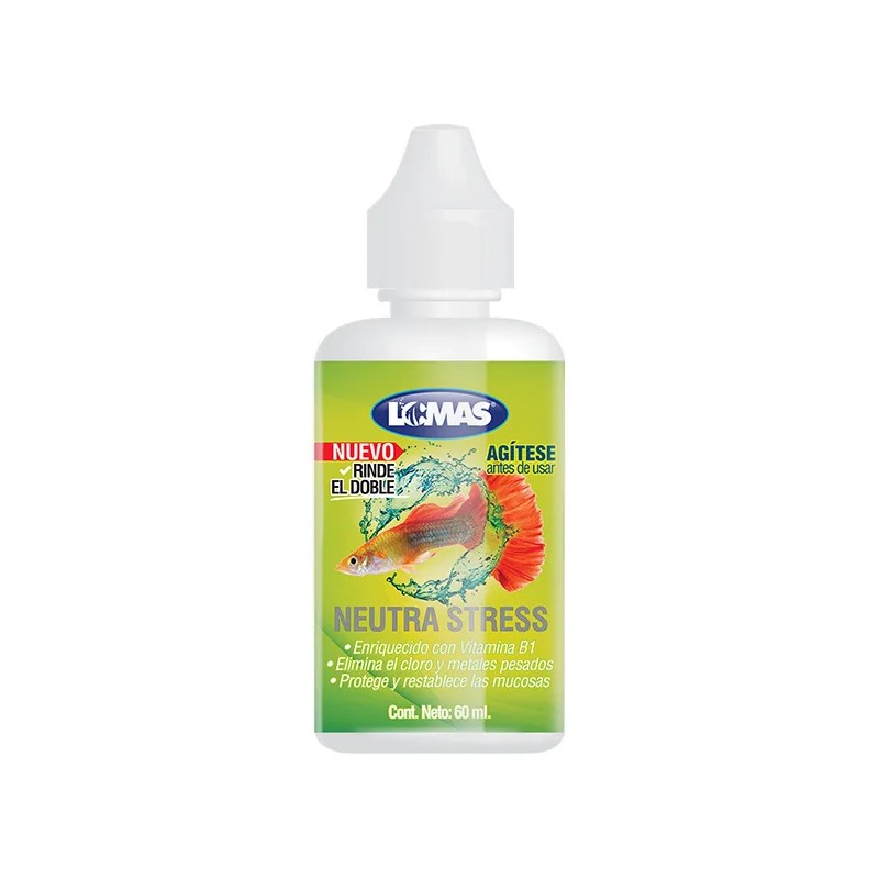 Transforma el bienestar de tus peces con Neutra Stress, el acondicionador esencial para acuarios de agua dulce y salada. Este elixir de 60 ml está diseñado para proteger las delicadas mucosas de tus peces mientras elimina el cloro y detoxifica metales pesados, asegurando un hogar acuático prístino.