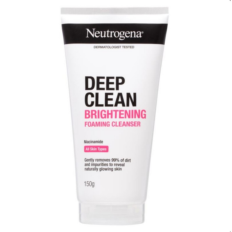 Neutrogena Deep Clean Brightening Foaming Cleanser removes 99% of dirt and impurities, while retaining 99% of skin's natural moisture. With Niacinamide, known to visibly improve uneven skin tone for naturally glowing skin. Suitable for all skin types, including sensitive skin.
