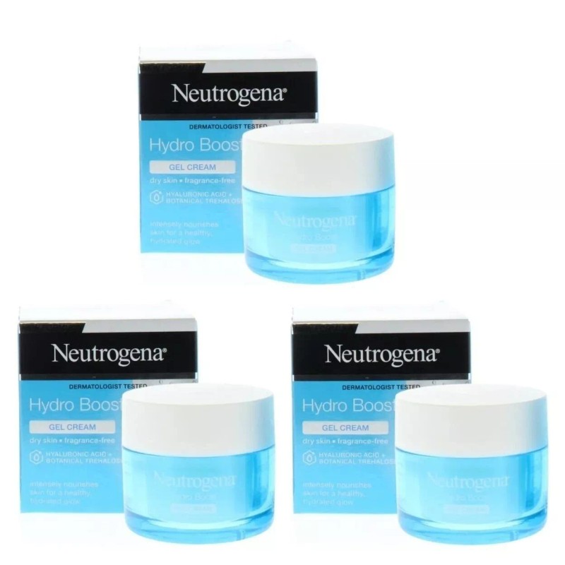 Neutrogena Hydro Boost Gel Cream 50ml (3 Pack) Use Neutrogena Hydro Boost Hyaluronic Acid Gel-Cream Moisturizer to instantly quench and provide long-lasting moisture relief for your extra-dry skin. This daily facial lotion helps quench extra-dry skin and keeps it looking smooth supple and hydrated day after day. The unique gel-cream formula absorbs quickly like a gel and has the long lasting moisturizing power of a cream. It is formulated with hyaluronic acid a hydrator found naturally in the skin attracts moisture and locks it in. This moisturizer formula for dry skin results in more supple healthy-looking and smooth looking skin. From a Dermatologist Recommended Brand this gel-cream face lotion is oil- dye- and fragrance-free and non-comedogenic. It can be worn alone or under makeup. Add this hyaluronic acid gel cream moisturizer to your daily at-home hydrating self care routine.