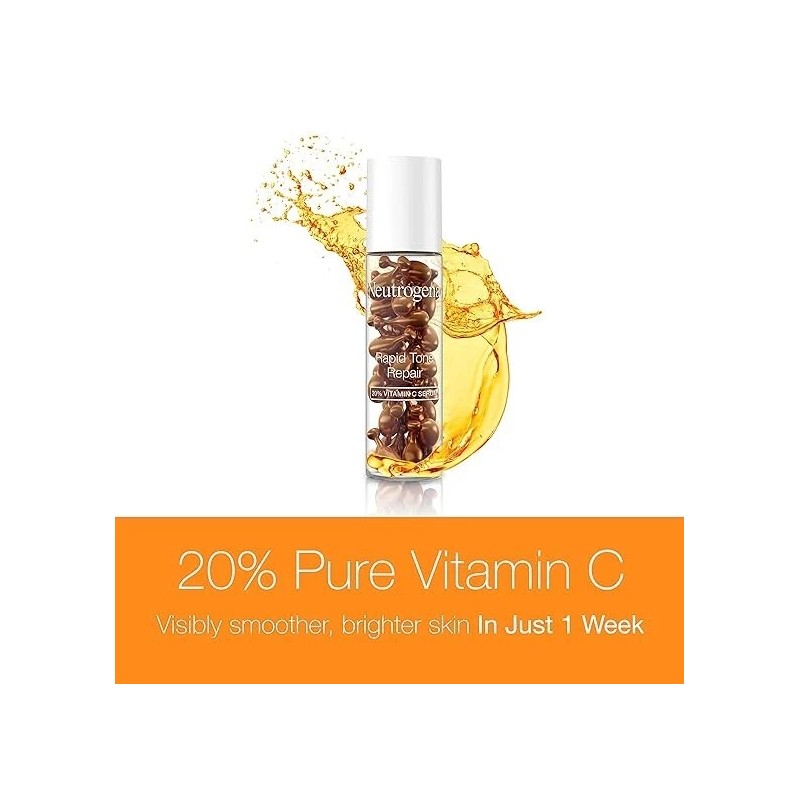- [Brief text]: Neutrogena's Rapid Tone Repair 20% Vitamin C Brightening Serum Capsules deliver immediate and rapid skin benefits with its efficient formula, making it a quick solution for brightening skin tone and minimizing dark spots.