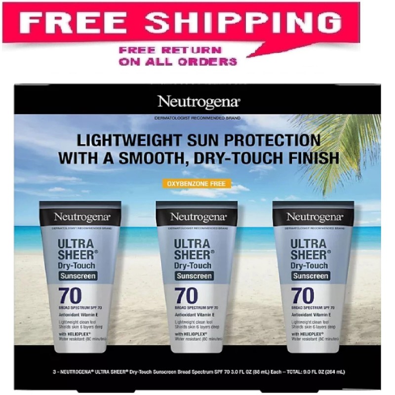 Neutrogena Ultra Sheer Dry-Touch Sunscreen Lotion, SPF 70, 3 oz., 3 pk.