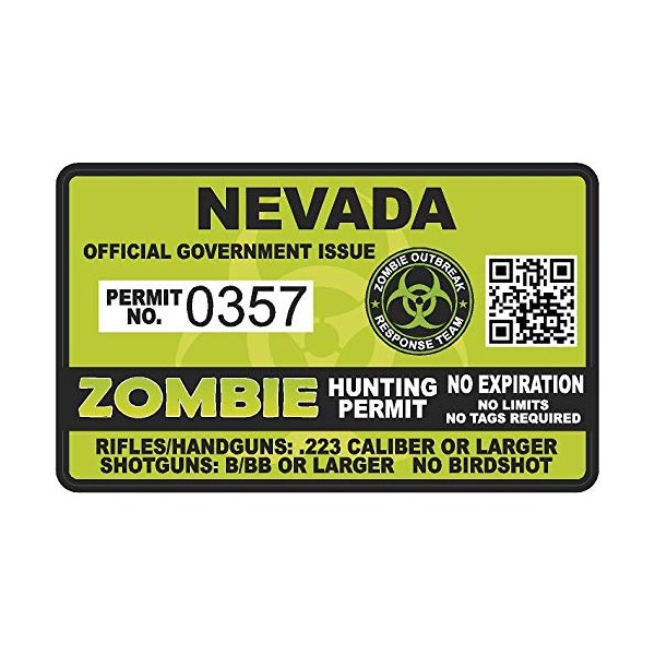 - Neveda NV Zombie Hunting Permit - Hunter response biohazard team Unit 4" Outbreak Sticker