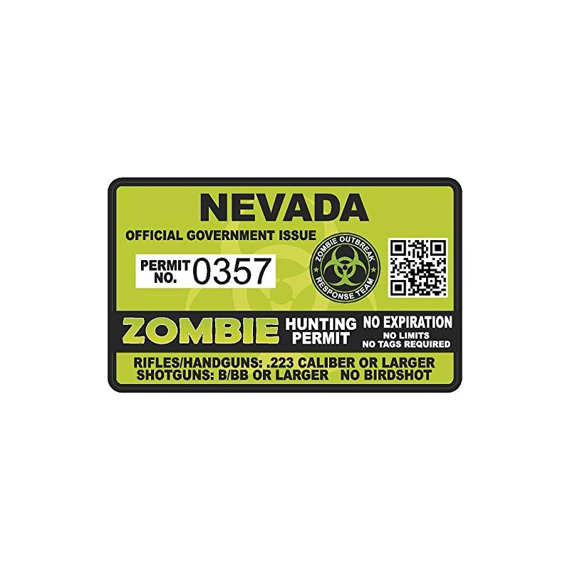 Neveda NV Zombie Hunting Permit - Hunter Response Team Unit 4" Outbreak Sticker