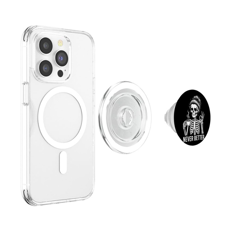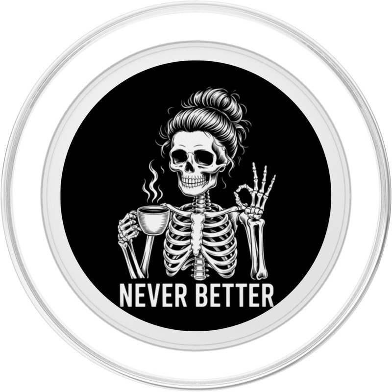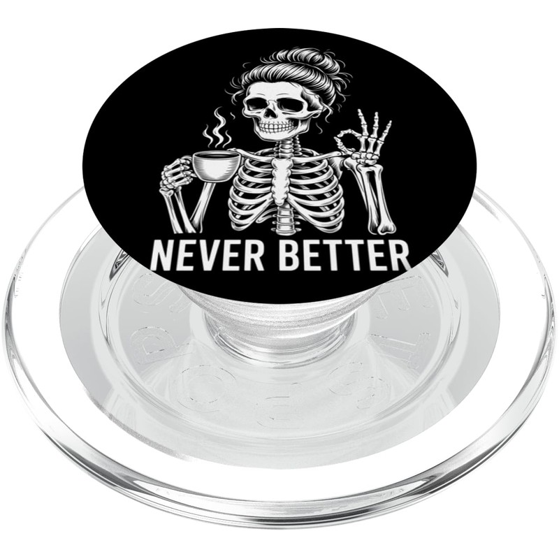 Never Better Skelett Koffeintrinker Halloween Kaffee PopSockets PopGrip für MagSafe