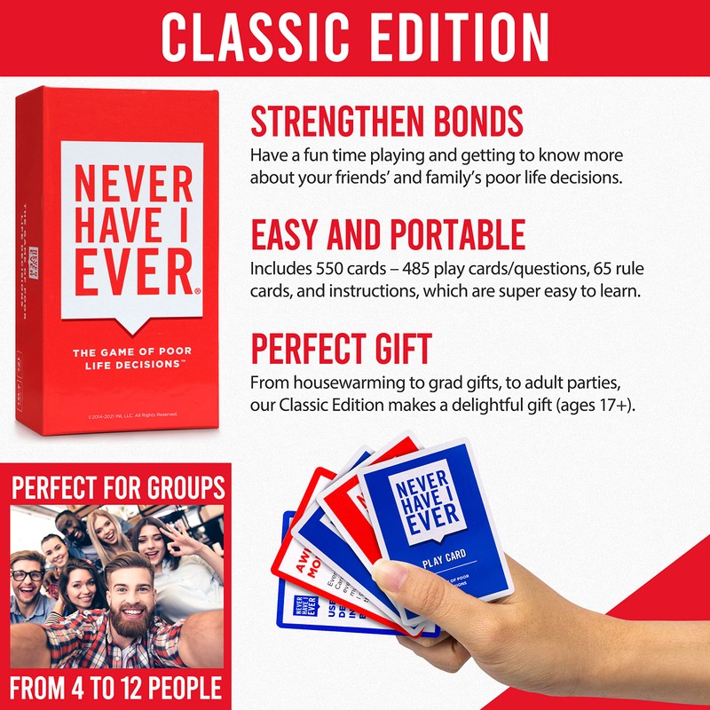 Never Have I Ever Classic Edition Adult Party Game: Hilarious Card Games for Game Nights, Gatherings & More! for 4+ Players, Ages 17+