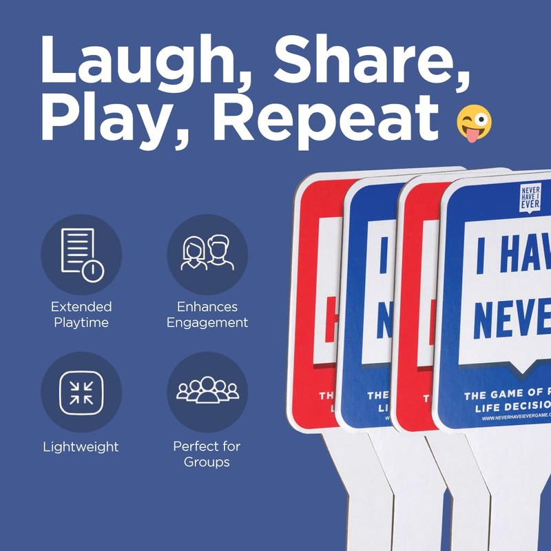 - PADDLES FOR MORE FUN - Add an extra layer of excitement to the Never Have I Ever Classic Edition Card Game with these paddles. With 'I have never' on one side and 'I have' on the other, you'll have a visual cue to make the game even more engaging.