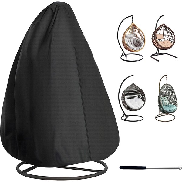 NEVERLAND Large Egg Chair Covers Waterproof Egg Chair Covers with Zipper and Telescopic Pole 210D Heavy Duty Veranda Garden Cover for egg chair on stand 205 * 120cm, Black